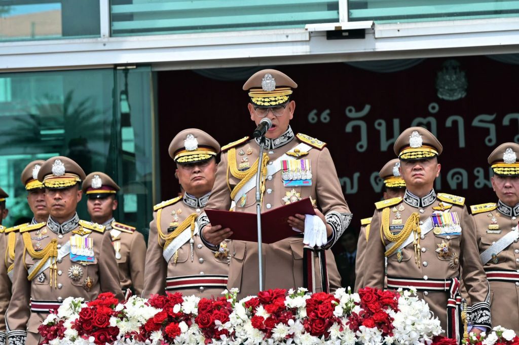 พล.ต.อ.กิตติ์รัฐ พันธุ์เพ็ชร์ ผู้บัญชาการตำรวจแห่งชาติ นำกล่าวคำสัตย์ปฏิญาณตนต่อหน้าธงชัย ซึ่งเป็นสัญลักษณ์แทนองค์พระบาทสมเด็จพระเจ้าอยู่หัว และเป็นเครื่องหมายของสามสถาบันหลัก คือ ชาติ ศาสนา และพระมหากษัตริย์ อันเป็นหลักสำคัญของบ้านเมือง เพื่อย้ำคำมั่นสัญญาในการเป็นข้าราชการตำรวจที่ดี ปฏิบัติหน้าที่อย่างเต็มกำลังความสามารถ ในการพิทักษ์ปกป้องสถาบัน และดูแลความปลอดภัยพี่น้องประชาชน สังคม และประเทศชาติ