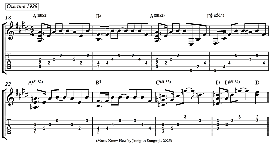 ตัวอย่างที่ 5 การดำเนินคอร์ดเพลง Overture 1928 ห้องที่ 18-25