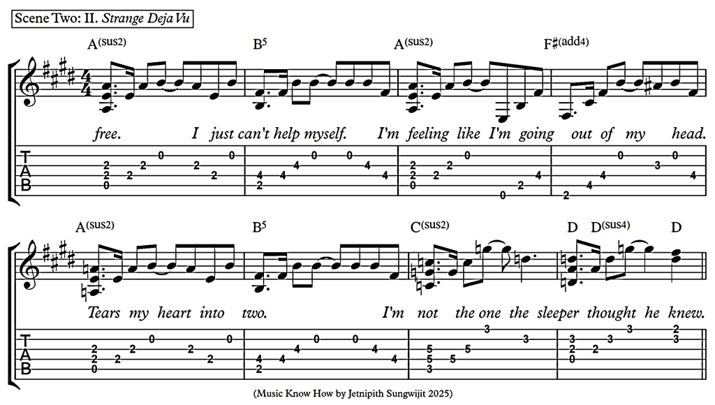ตัวอย่างที่ 6 การดำเนินคอร์ดช่วง Chorus ในเพลง Scene Two: II. Strange Deja Vu