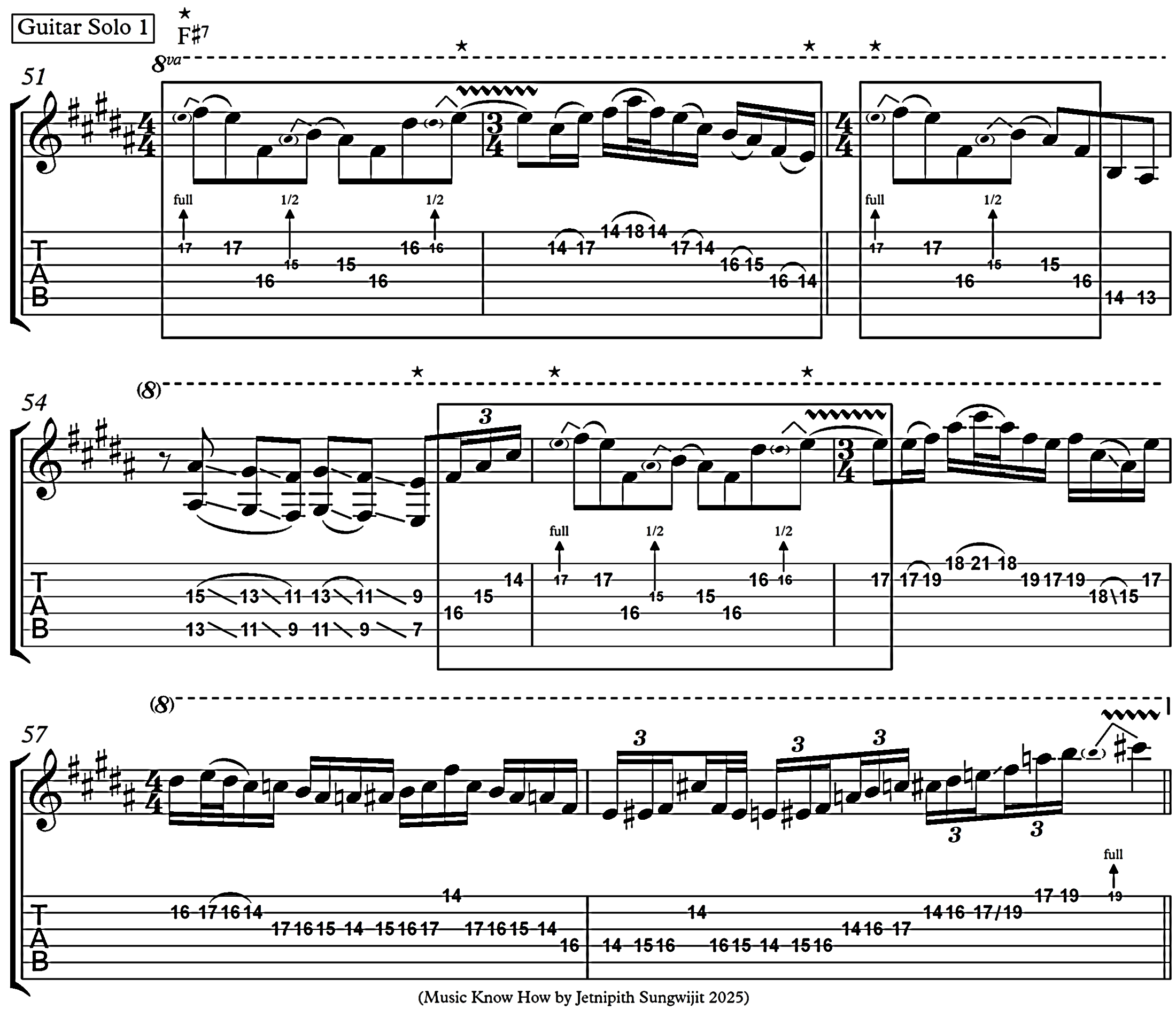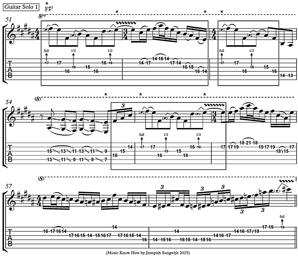 ตัวอย่างที่ 9 แนวทำนอง Guitar Solo 1 เพลง Overture 1928 ห้องที่ 51-58