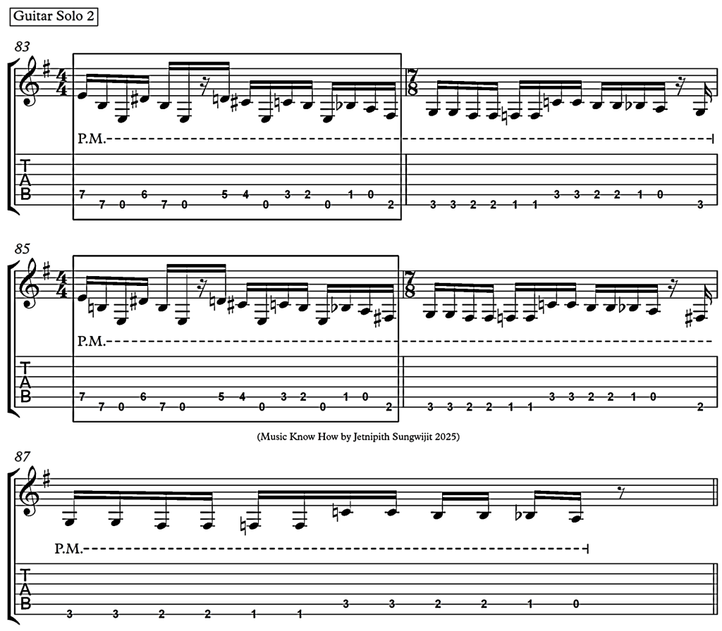 ตัวอย่างที่ 13 แนวทำนอง Guitar Solo 2 เพลง Overture 1928 ห้องที่ 83-87